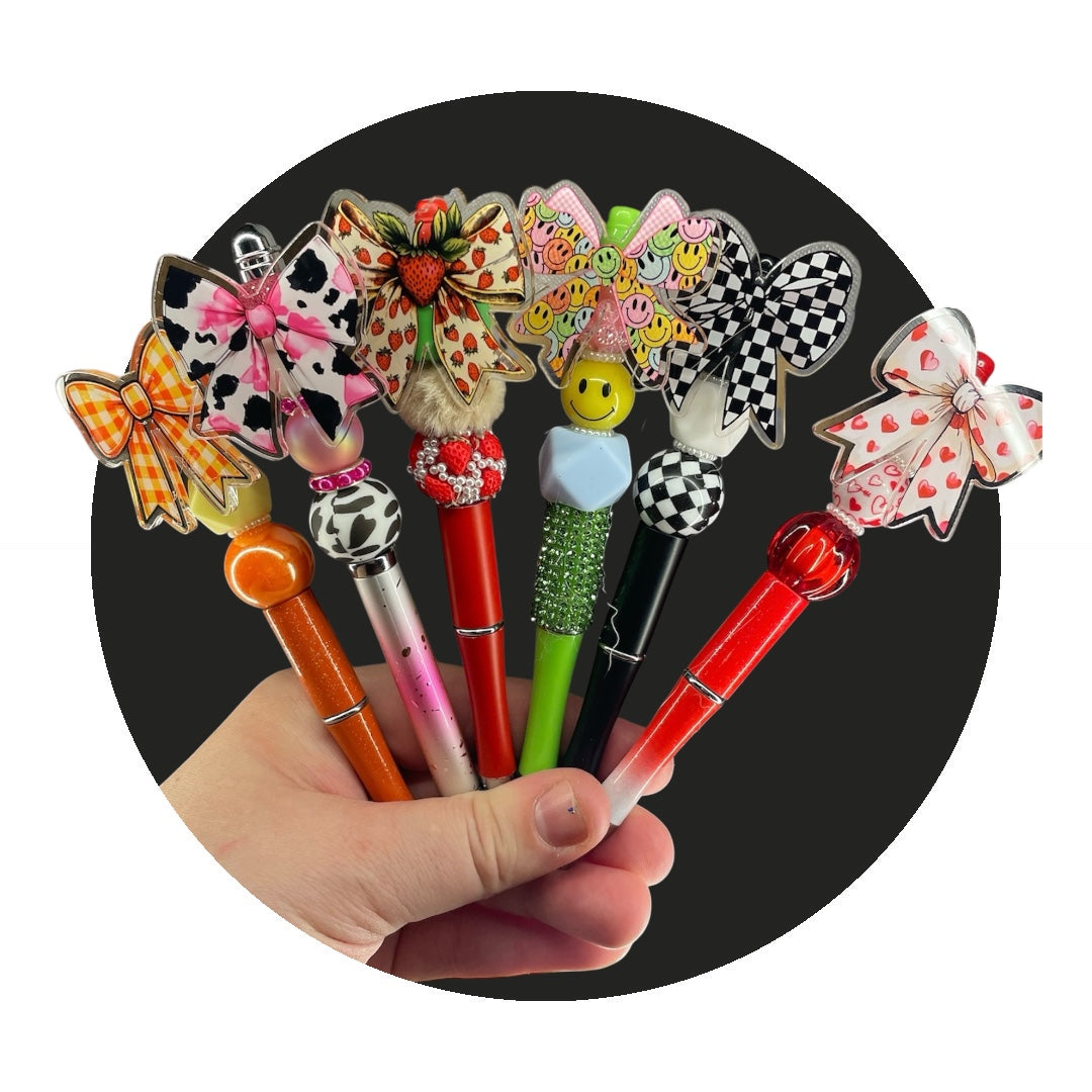 Please note that the beads will be different on the pens unless stated otherwise.  All pens have acrylic attached to the pen and beads matching.